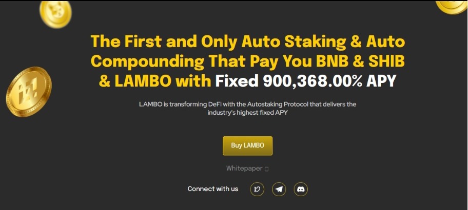 LAMBO FINANCE: The best rebase and Autostaking protocol with BNB, SHIB passive income and with highest fixed APY 900,368.00%